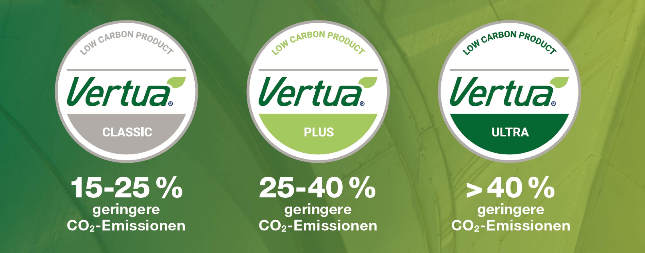 Mit seiner Future in Action-Strategie strebt CEMEX eine klimafreundliche Produktion weltweit an. Ein wichtiger Punkt dabei: die Entwicklung CO₂-reduzierter Baustoffe und Zusatzmittel. Für diese hat CEMEX das Siegel Vertua® geschaffen. Vertua® kennzeichnet solche Zemente, deren CO₂-Emissionen um mindestens 15 Prozent verringert sind. Die Vertua®-Siegel CLASSIC, PLUS und ULTRA weisen den Umfang der CO₂-Reduktion aus.